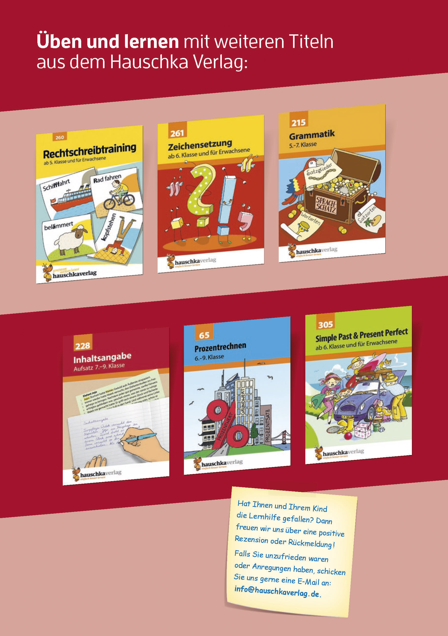In sieben Schritten behandelt dieses Heft die Aufsatzform Erörterung. Viel Übungsmaterial zu den verschiedenen Schritten festigen die Herangehensweise an ein Erörterungsthema. Dabei werden viele gängige Themen behandelt, was eine gezielte und effektive Vorbereitung auf Schulaufgaben unterstützt. Mit dem herausnehmbaren Lösungsteil können die Schüler:innen selbstständig ihre Ergebnisse überprüfen und so ihren Kenntnisstand kritisch beurteilen. Zwei Beispielaufsätze am Ende des Heftes zeigen nochmals gezielt, wie eine gute Erörterung aufgebaut ist. Eine umfangreiche Themensammlung bietet darüber hinaus weiteres Übungsmaterial.