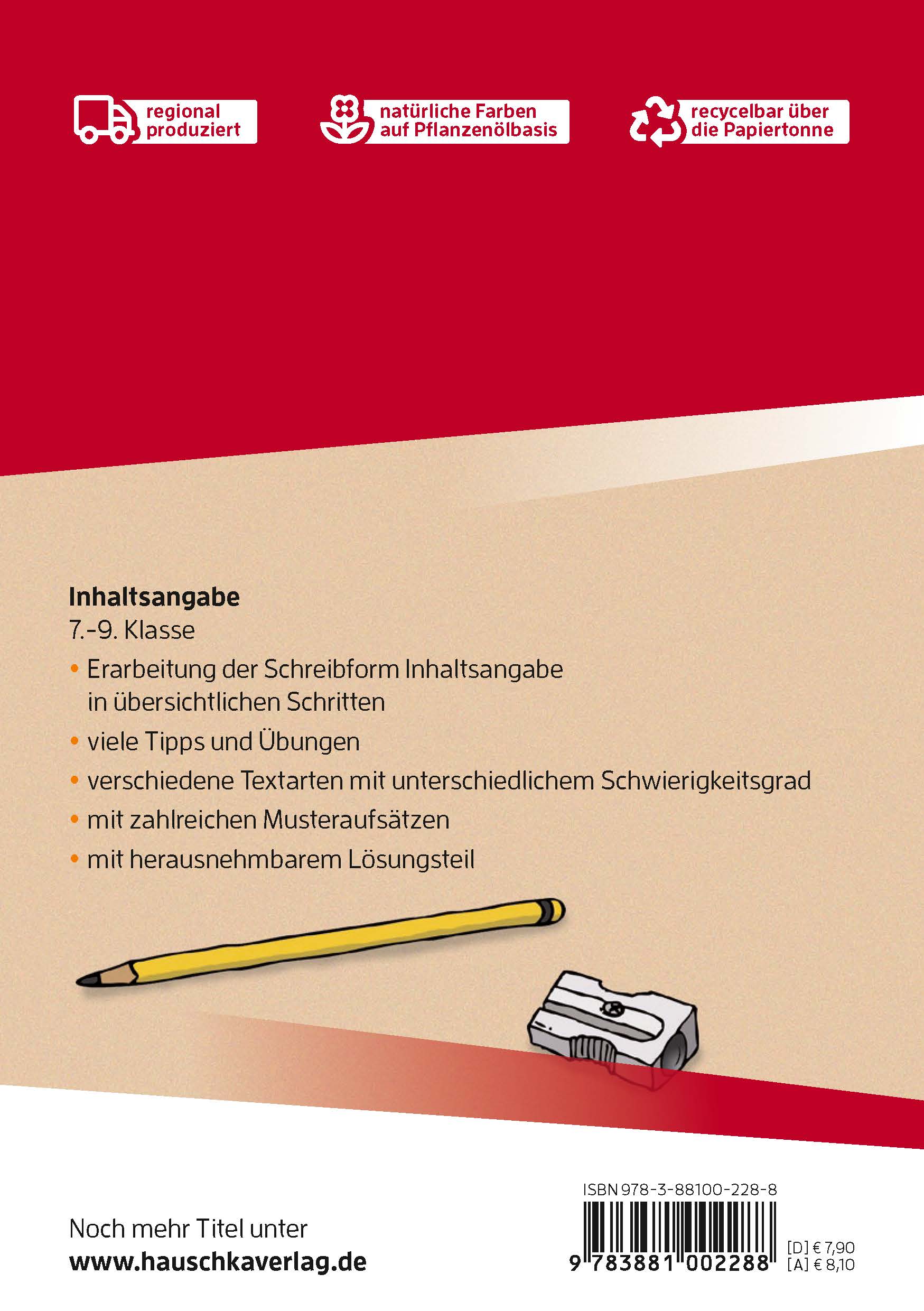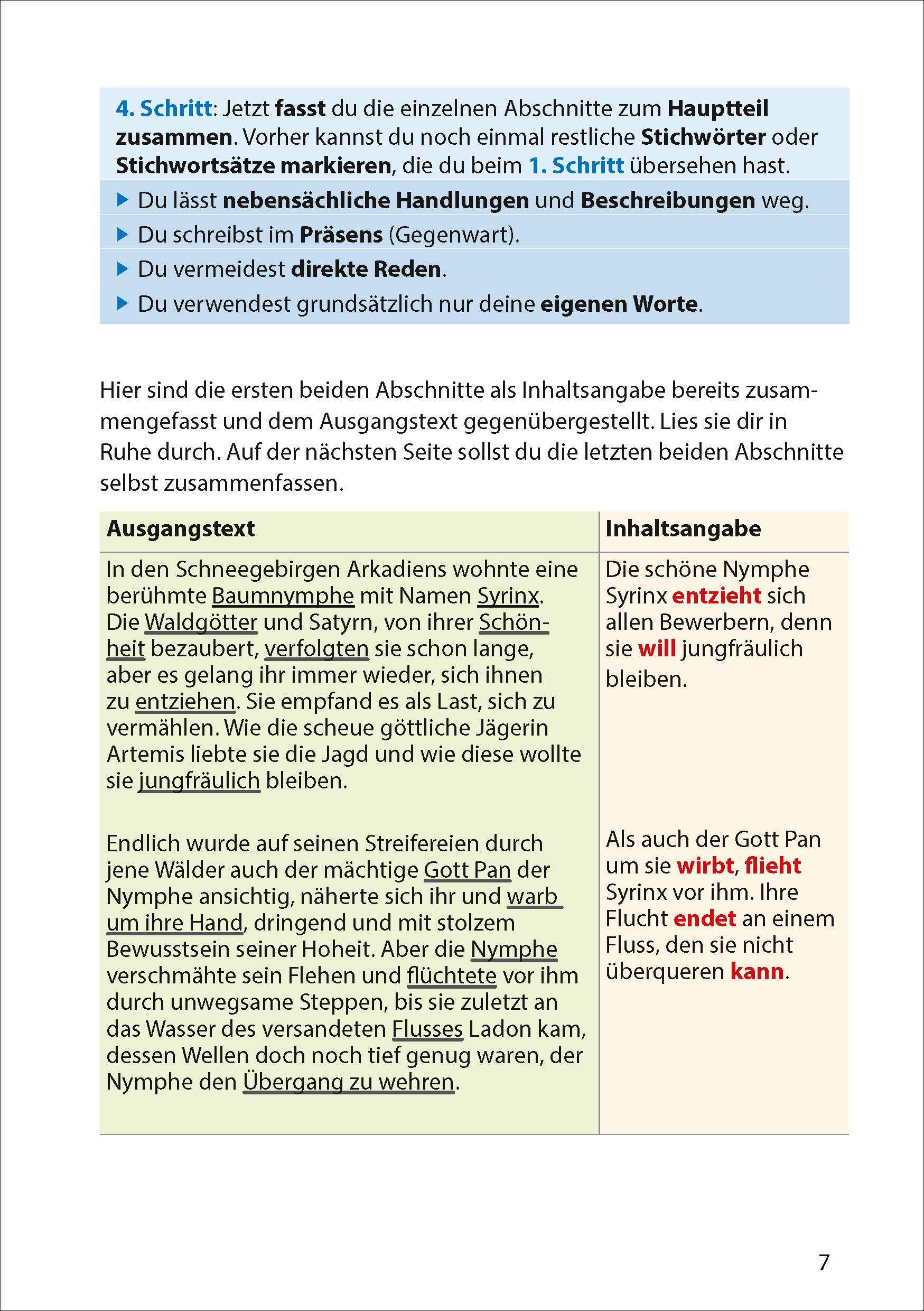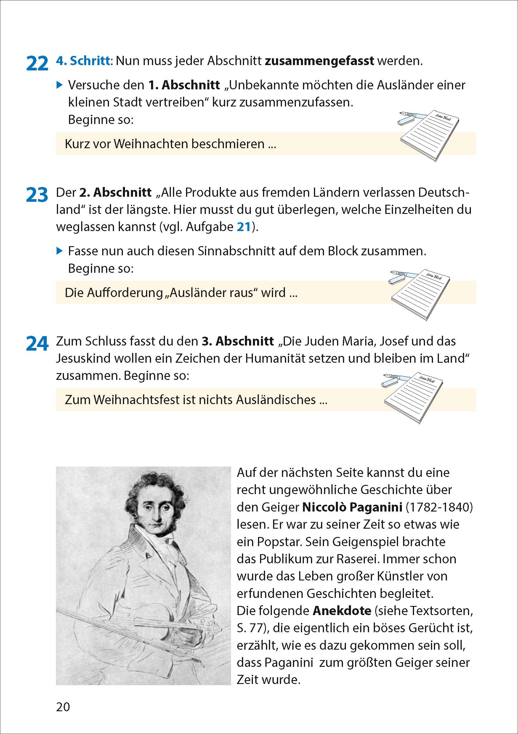 In fünf Schritten zur Inhaltsangabe: Anhand unterschiedlicher Texte wird das Erarbeiten einer Inhaltsangabe Schritt für Schritt geübt. Dabei werden sowohl verschiedene Textsorten (Erzählung, Romanausschnitt, Anekdote, Sachtext) berücksichtigt als auch unterschiedliche Schwierigkeitsgrade. Daher ist diese Lernhilfe von der 7. bis zur 9. Klasse einsetzbar. Viele abwechslungsreiche Übungen zur Erarbeitung von Einleitung, Hauptteil und Schluss sowie zur direkten und indirekten Rede erwarten die Schüler:innen. Ein Überblick über Textsorten und wichtige Begriffe als auch eine Übersicht über die Arbeitsschritte, die für das Verfassen einer Inhaltsangabe wichtig sind, erleichtern dabei das selbstständige und gezielte Arbeiten.