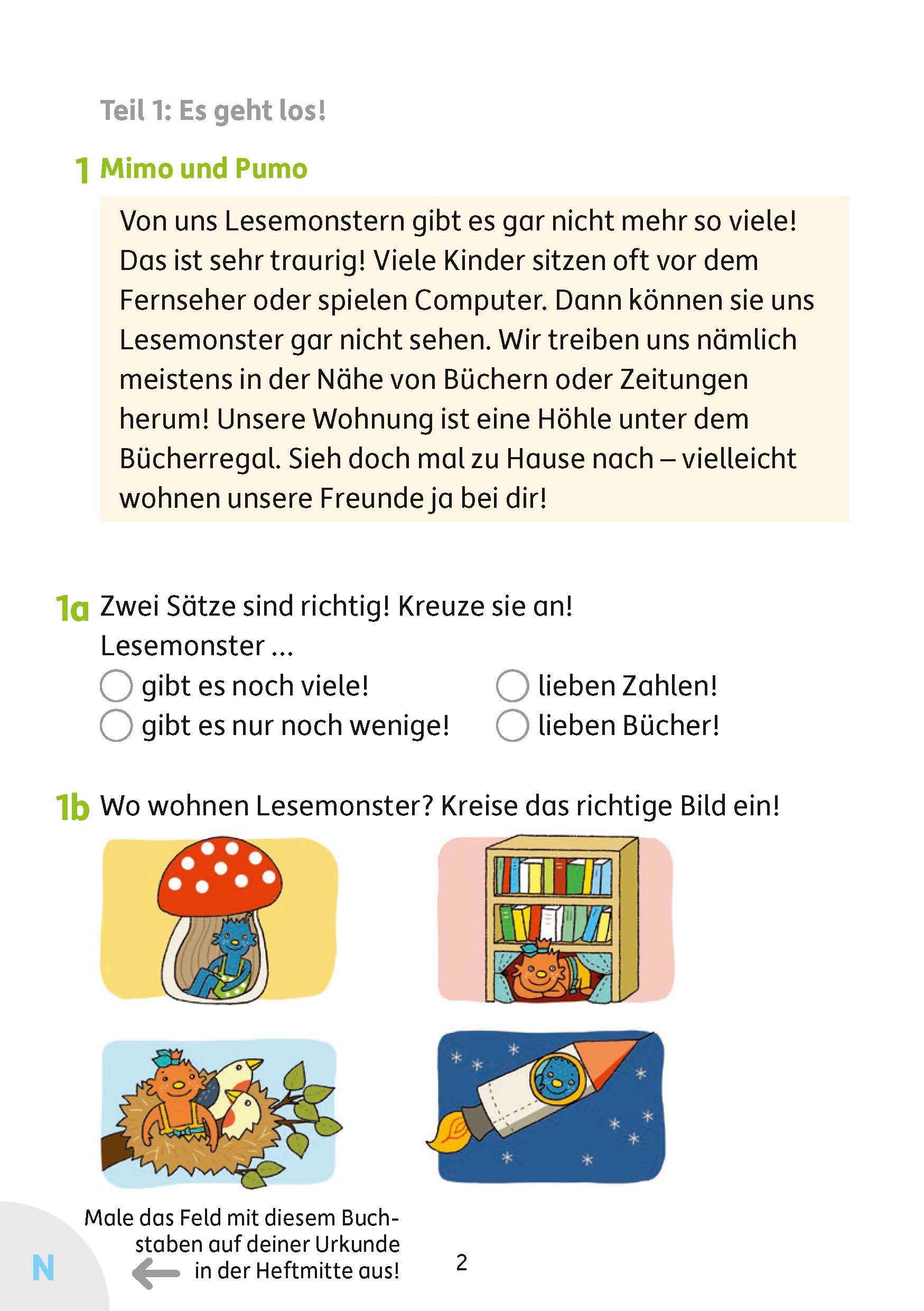 Die Lesemonster Mimo und Pumo helfen in diesem Heft fleißig beim Lesenüben. Unterschiedliche Textarten – Witz, Gedicht, Bastelanleitung, Wegbeschreibung u. v. m. – wollen gekonnt gelesen werden. Dazu gibt es abwechslungsreiche Aufgaben, die zeigen, ob das Gelesene auch verstanden wurde. Los geht es mit leichten Aufgaben, dann weiter mit mittelschwierigen und abschließend können sich die Kinder als Leseprofis beweisen. Das Heft kann selbstständig bearbeitet und die eigenen Lösungen mit dem herausnehmbaren Lösungsteil kontrolliert werden. Eine Urkunde als Belohnung wächst mit jeder erarbeiteten Aufgabe und motiviert so zum stetigen Üben.