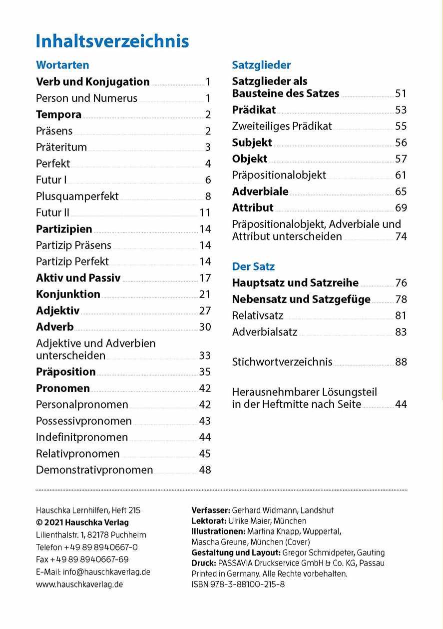 Die deutsche Grammatik und ihre Besonderheiten sind ein komplexes Thema. Vielen Schüler:innen fällt es daher schwer, Wortarten, Satzglieder und Satzarten im Deutschen richtig zu bestimmen. Dieses Heft bietet genau erklärte Regeln und viel Übungsmaterial zu den einzelnen grammatischen Gebieten. Darüber hinaus werden viele Tipps und Tricks angeboten, um bestimmte Fehler zu vermeiden (z. B. die Unterscheidung von Adjektiv und Adverb). Zwischentests zu jedem Kapitel geben Aufschluss über den Lernerfolg. Das Heft ist somit von der 5. bis zur 7. Klasse ein sinnvoller Begleiter für alle Schüler:innen.
