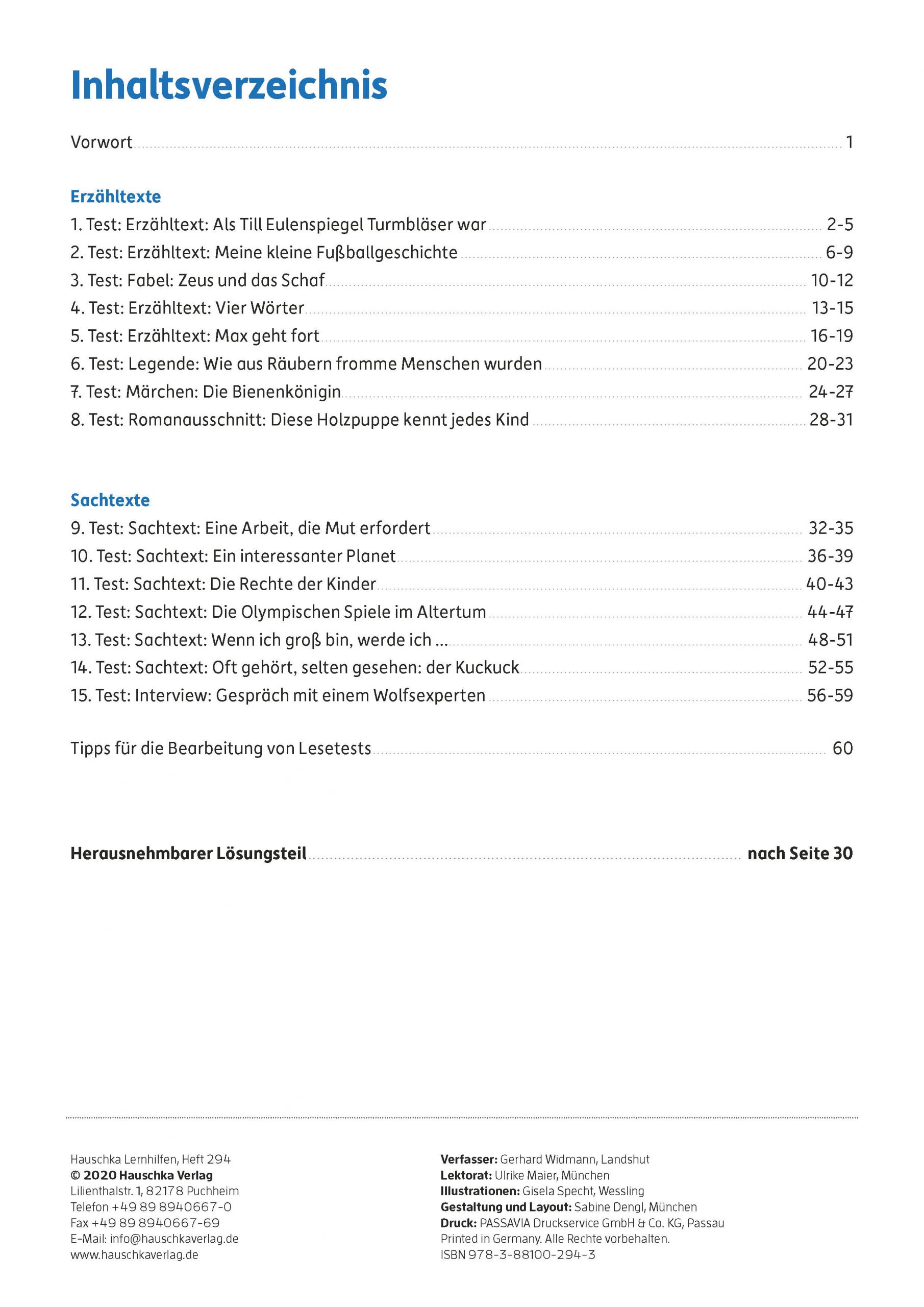 In der 4. Klasse bekommen die Tests im Bereich Leseverständnis eine größere Bedeutung. Gerade auf diese Tests kann man sich am wenigsten vorbereiten, ist doch der Text immer neu und unbekannt. Dieses Heft will Kindern die Sicherheit im Bearbeiten von Lesetests geben. Es beinhaltet Klassenarbeiten zu unterschiedlichsten Texten mit gängigen Aufgaben und Fragestellungen, die so auch in der Schule gefordert werden. Die Kinder können unter realen Testbedingungen arbeiten, ihre Ergebnisse mit den Lösungen vergleichen und Punkte vergeben. So bekommen die Kinder eine Rückmeldung über den eigenen Leistungsstand und gewinnen Sicherheit im Umgang mit Lesetexten.