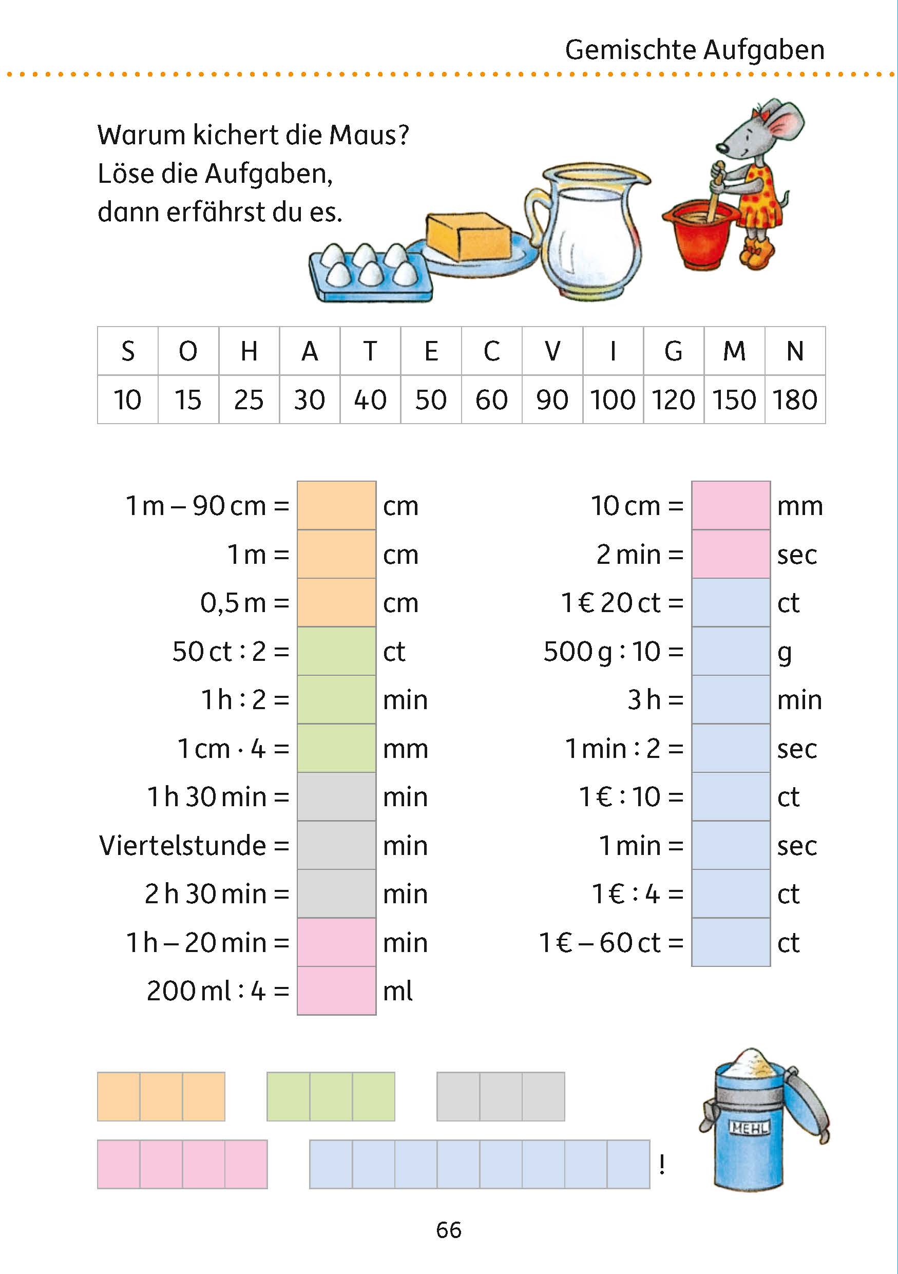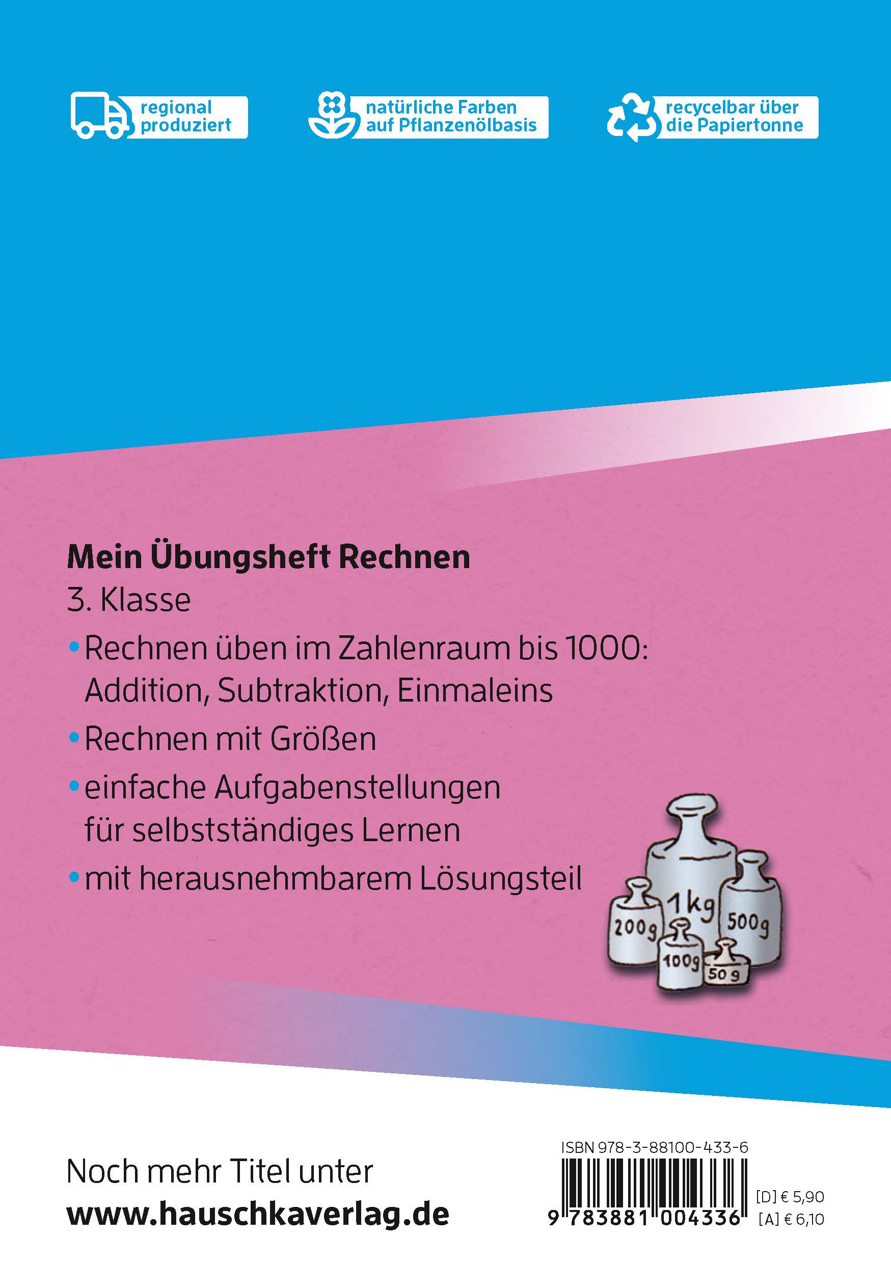 Das Wiederholen und Trainieren gehört zum Lernen einfach dazu, denn nur die Übung macht die Meister:innen. In diesem Übungsheft finden die Kinder wichtige Aufgabenarten zum Rechnen in der dritten Klasse. Abwechslungsreiche, aber schnell verständliche und gut strukturierte Übungen erschließen übersichtlich den Zahlenraum bis 1000. Addition, Subtraktion, Multiplikation und Division, aber auch Text- und Sachaufgaben und der Umgang mit Größen werden trainiert. Mit diesem Heft können die Kinder selbstständig üben und jeweils passend zum Unterricht Lerninhalte finden und diese vertiefen. Das zusätzliche Training lässt die Kinder ihre Rechenfertigkeit steigern und schafft so eine gute Grundlage, dass sie auch mit den schulischen Herausforderungen zurechtkommen. Ein herausnehmbarer Lösungsteil bietet die Möglichkeit zur Selbstkontrolle.