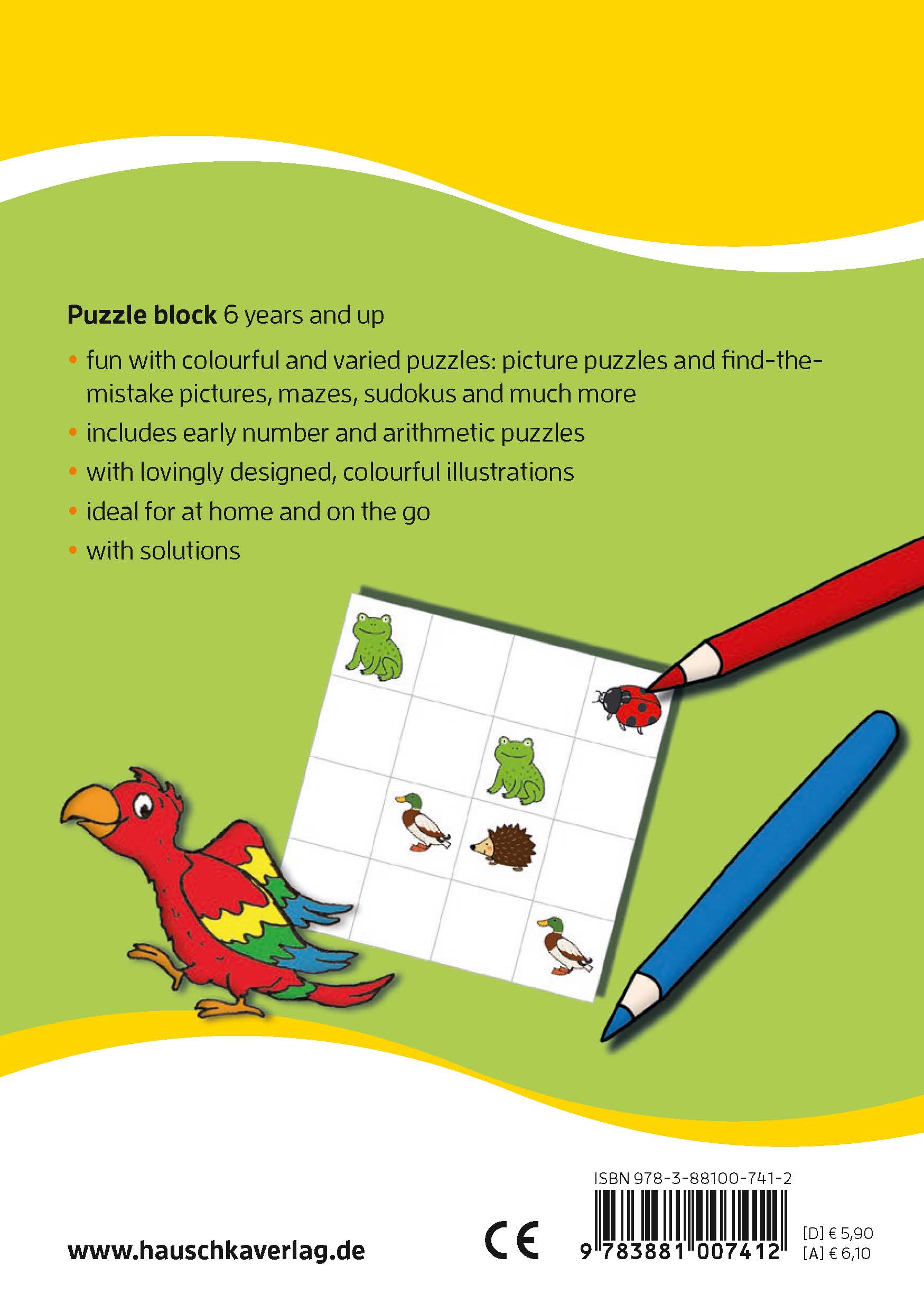 Say goodbye to boredom! This block contains a colourful mix of many different puzzles and fun exercises: mazes, picture puzzles, find the mistakes, sudokus, exercises for drawing and puzzling. The puzzles arouse curiosity and playfully develop abilities of perception, concentration and logical thinking. This puzzle block is the perfect companion for long waiting periods, train rides, rainy afternoons or any other time during the day. Ideally suited for first-graders.