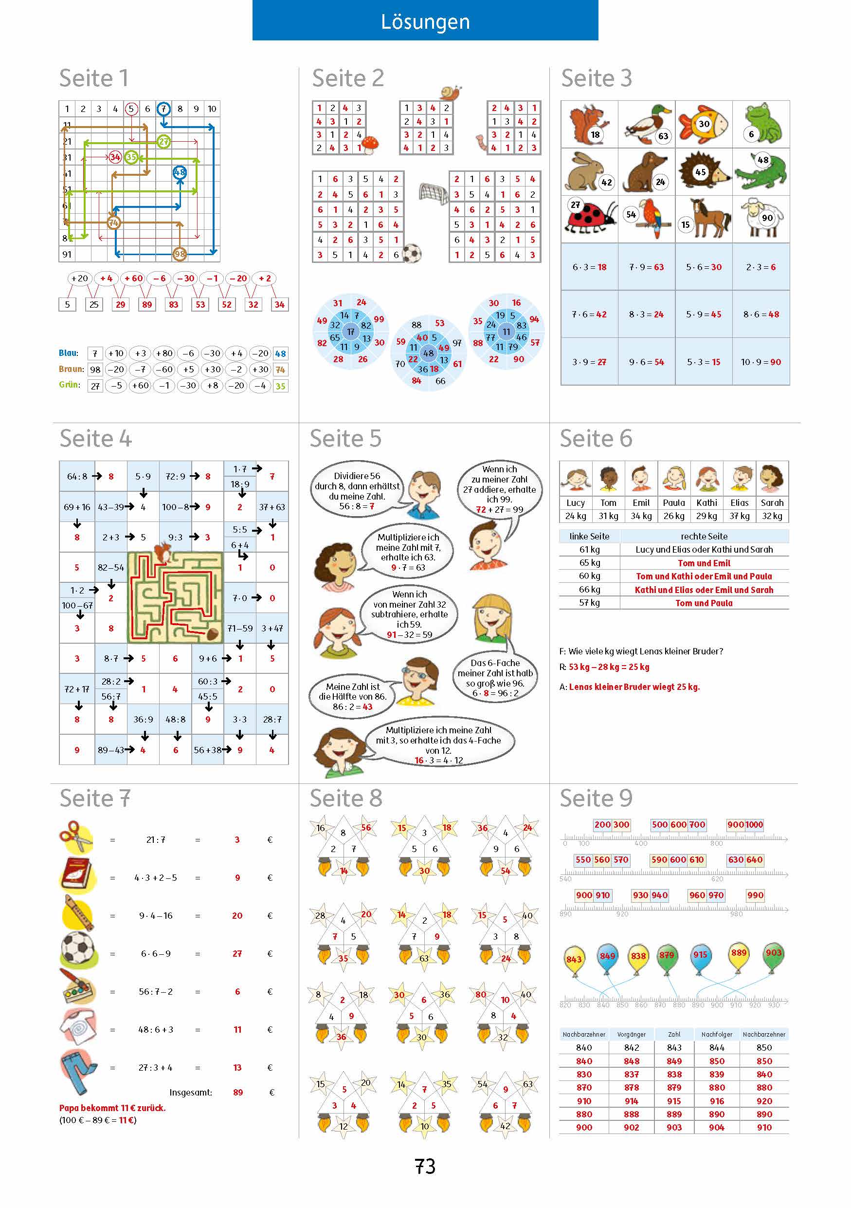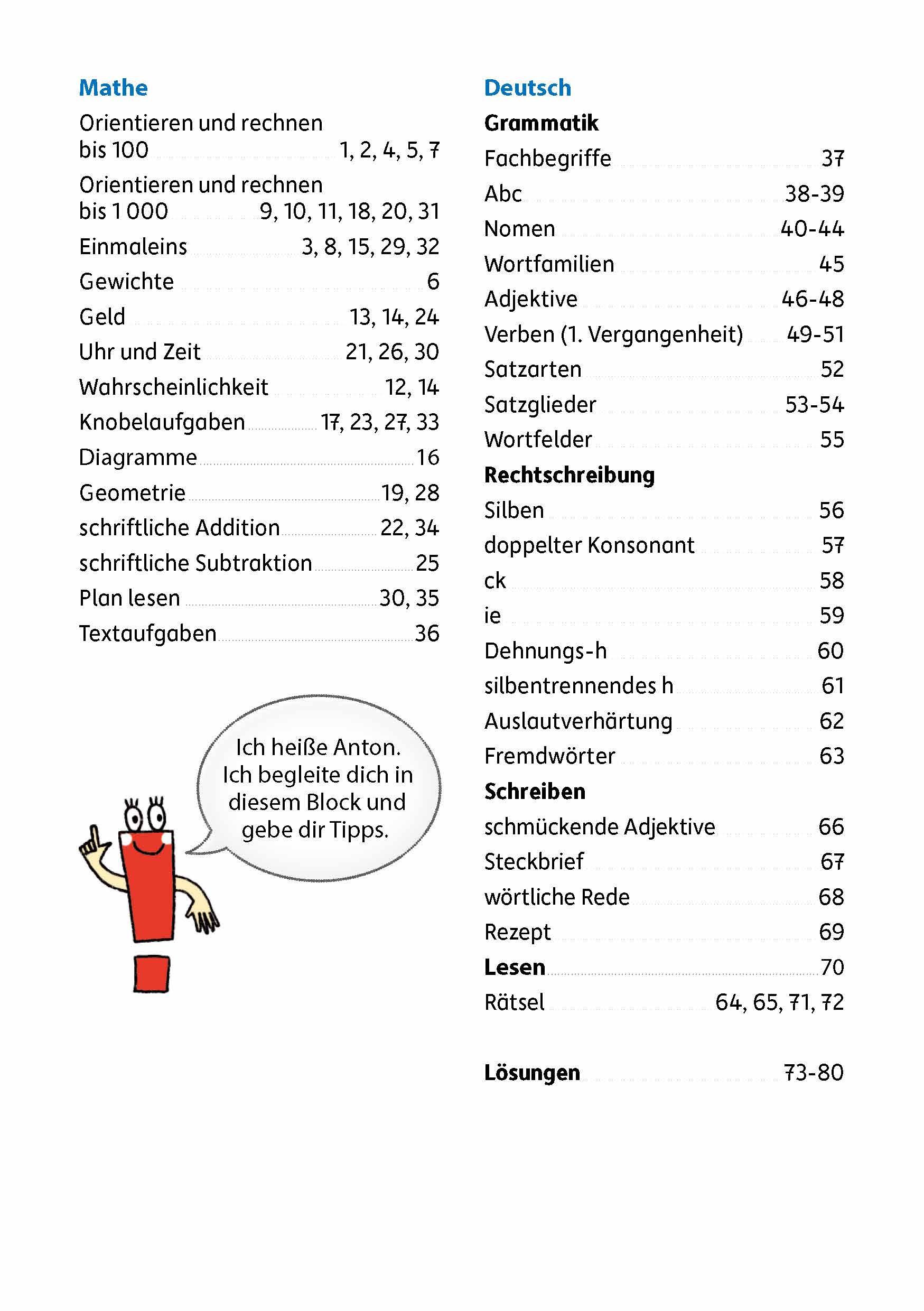Quer durch die 3. Klasse, Mathe und Deutsch