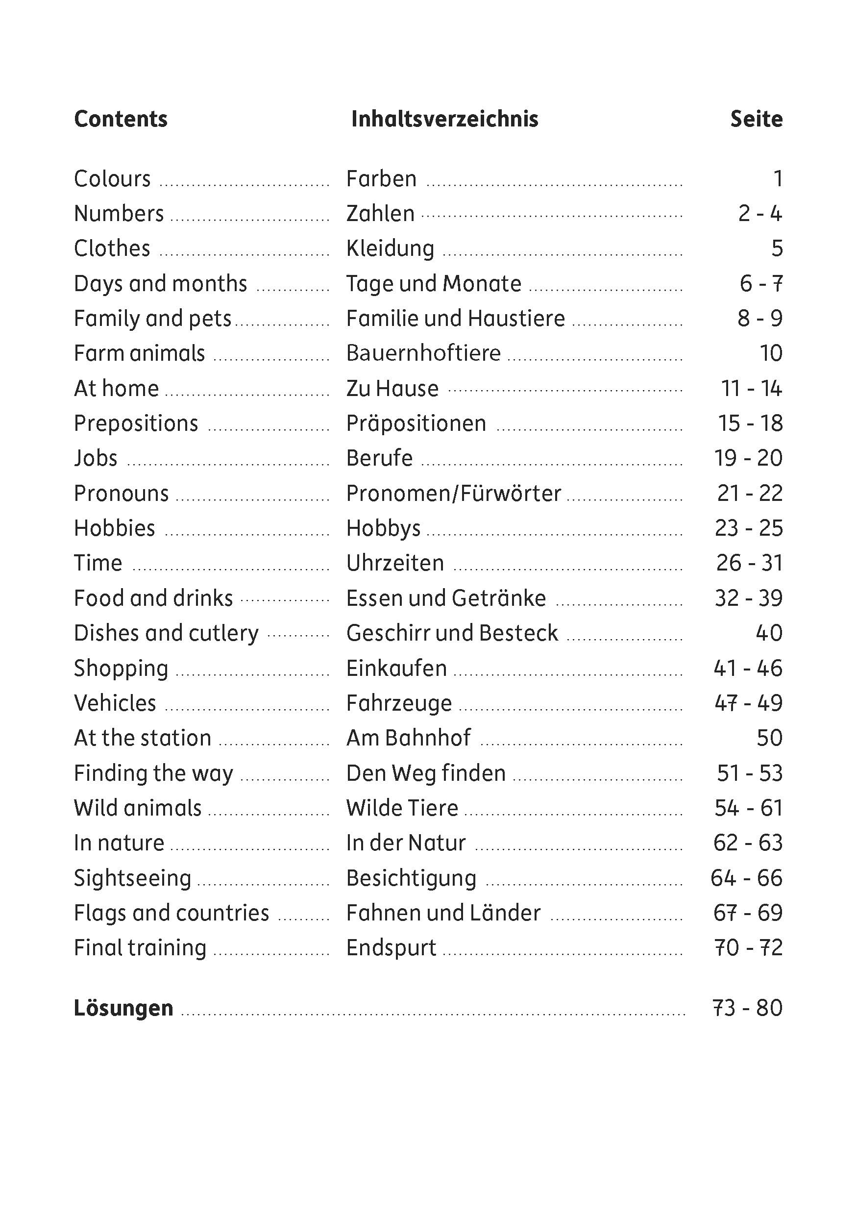 Mit vielen Bildern und spielerischen Aufgaben wird das Lernen der ersten Fremdsprache in diesem Block zum Vergnügen! Die abwechslungsreichen Übungen ermöglichen den Kindern, den gelernten Wortschatz zu wiederholen und zu erweitern. Das Wortmaterial wird inhaltlichen Themenblöcken zugeordnet, sodass die Schüler:innen parallel zum Schulunterricht damit arbeiten können. Inhaltliche Bereiche sind zum Beispiel Farben, Zahlen, Hobbys, Essen, Einkaufen, Uhrzeiten und Tiere. Der Block ist auch hervorragend als Vorbereitung für eine weiterführende Schule geeignet.