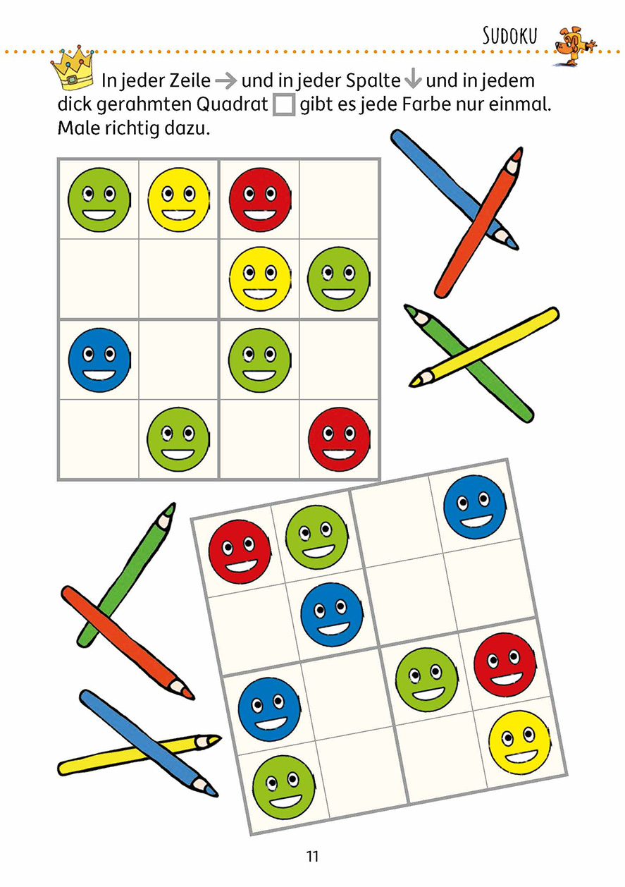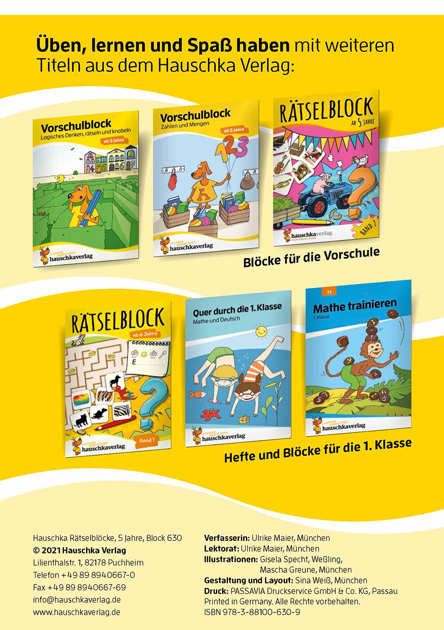 Langeweile? Keine Chance! In diesem Rätselblock warten 57 verschiedene Rätsel auf die Kinder: Labyrinthe, Such- und Fehlerbilder, Sudokus, Aufgaben zum Vergleichen und Verbinden und noch viel mehr. Mit viel Spaß fördern die Rätsel Motorik, Wahrnehmung, Konzentration und logisches Denken. Perfekt für lange Wartezeiten, Autofahrten, verregnete Nachmittage oder einfach für zwischendurch.