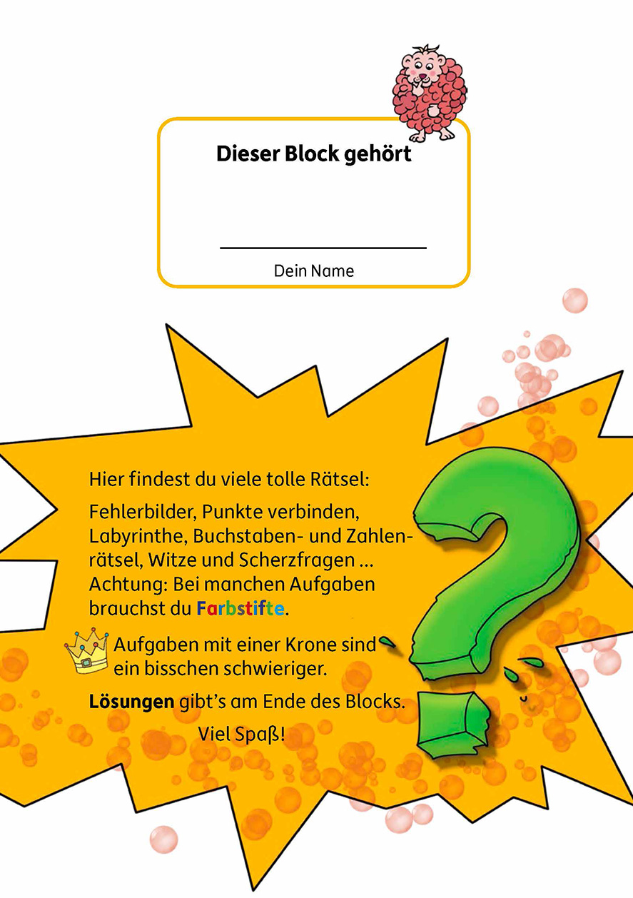 Langeweile? Keine Chance. Auf 57 Blockseiten gibt es abwechslungsreiche und vielseitige Rätsel, die Spaß machen und herausfordern, die Neugierde wecken und Konzentration und logisches Denken fördern: Labyrinthe, Such- und Fehlerbilder, Sudokus, Aufgaben zum Malen, Einkreisen und Verbinden und Knobeleien mit Wörtern und Zahlen zum Nachdenken. Ein handlicher Block, der perfekt ist für lange Wartezeiten, Bahnfahrten, verregnete Nachmittage oder einfach für zwischendurch!