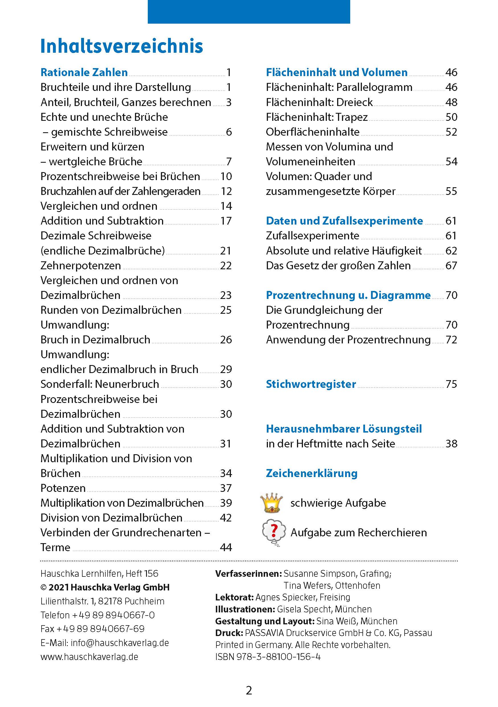 Die Aufgabenstellungen im Mathematikunterricht des Gymnasiums sind in der 6. Klasse vielseitig und werden immer komplexer. Diese Lernhilfe ermöglicht es, mithilfe von Merktexten und verschiedenen Aufgabentypen, Inhalte zu wiederholen und zu vertiefen. Sie enthält Übungen zu folgenden Bereichen: Rationale Zahlen, Bruchrechnen, Berechnung von Flächeninhalten und Volumen, Umgang mit Daten und Zufallsexperimenten, Prozentrechnen und Diagramme. Mit dem herausnehmbaren Lösungsteil lassen sich die eigenen Ergebnisse überprüfen und Schwächen und Stärken werden sichtbar, sodass gezielt geübt werden kann. So ist jeder gut auf den nächsten Test in der Schule vorbereitet.